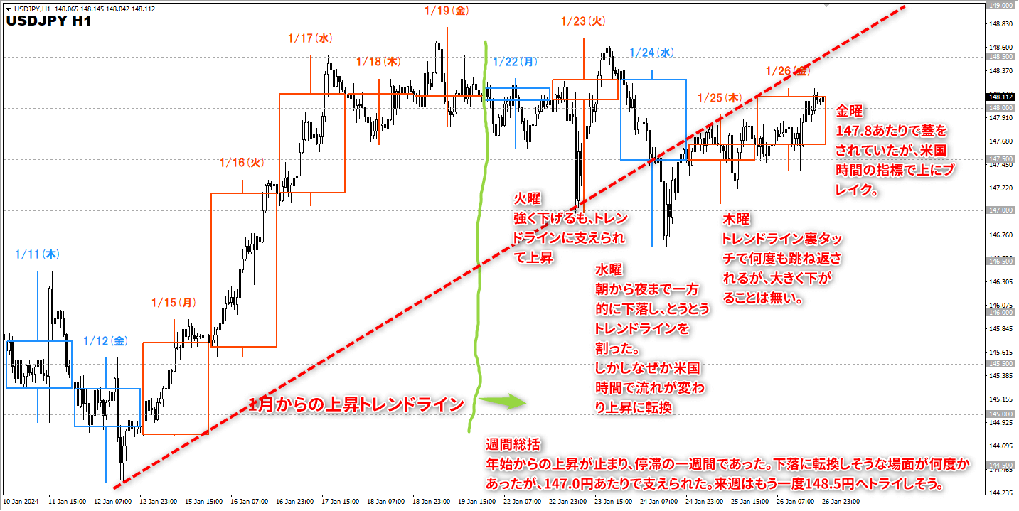 2024年1月22日(月)~1月26日(金)のFXの一週間のトレード結果です。