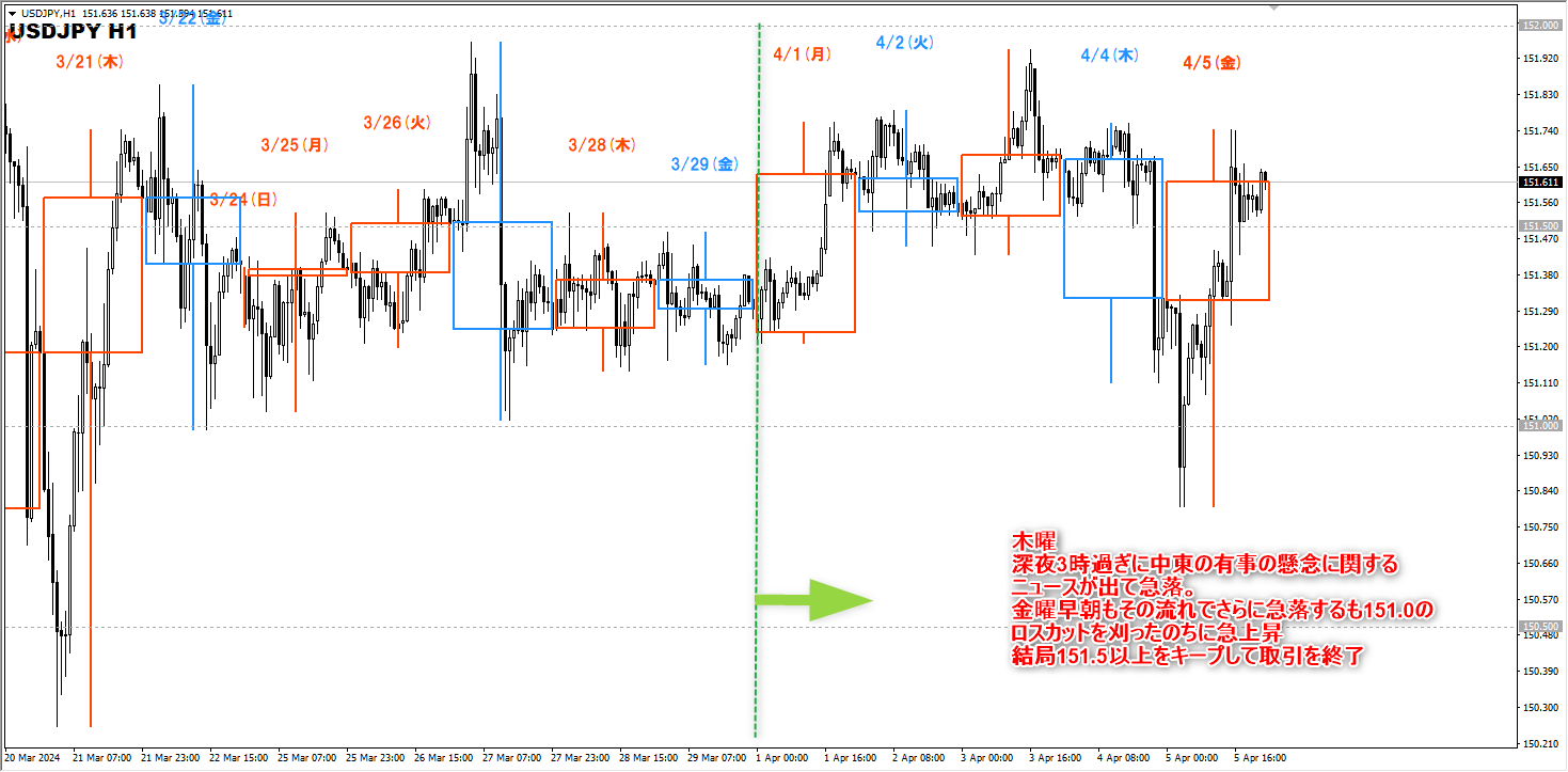 2024年4月1日(月)~4月5日(金)のFXの一週間のトレード結果です。