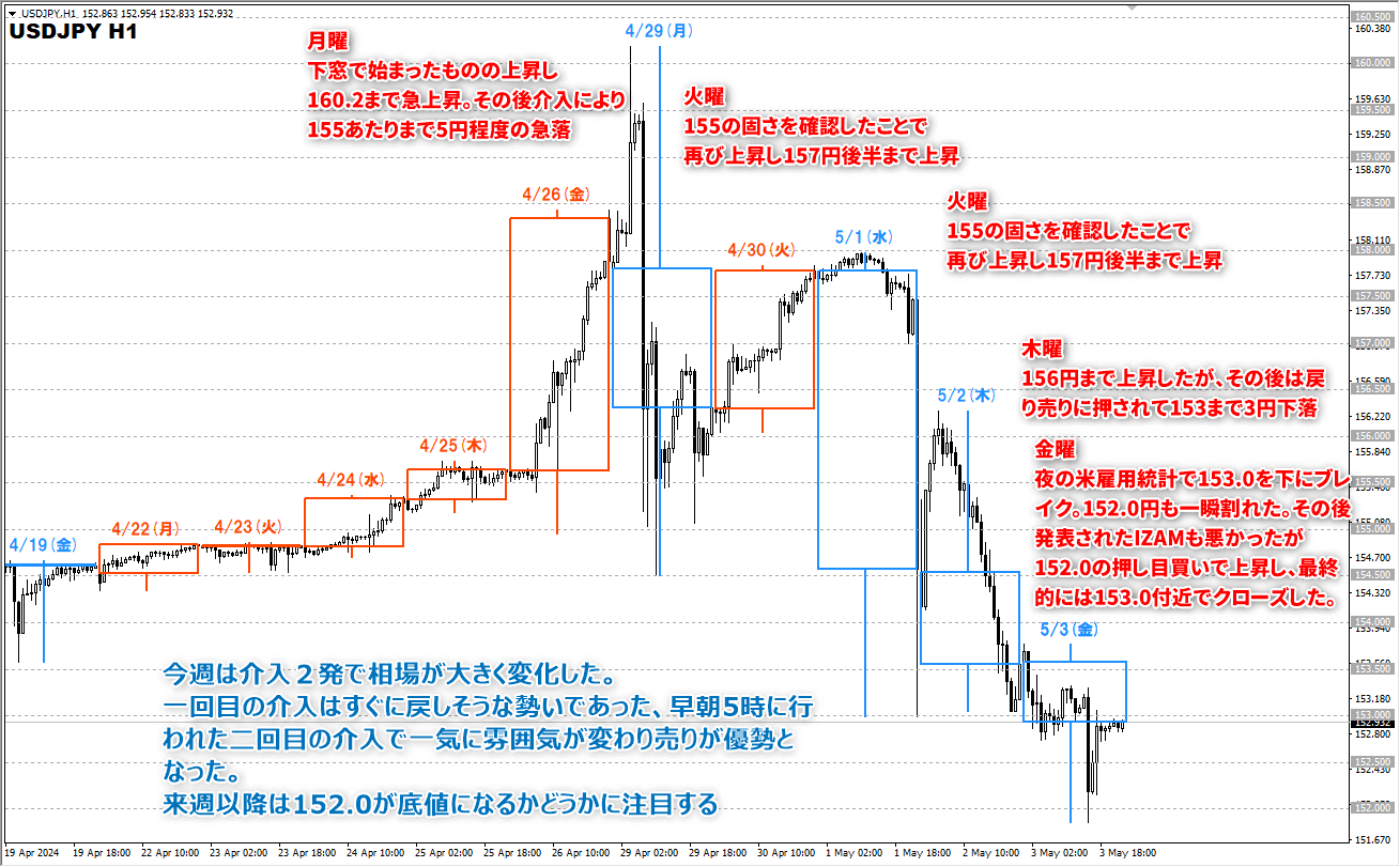 【2024/4/29~5/3】FX週間損益は+53,046円。ついに来た為替介入!!