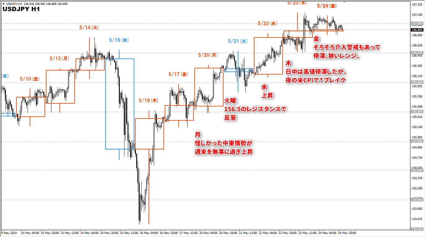 2024年5月20日(月)~5月24日(金)のFXの一週間のトレード結果です。
