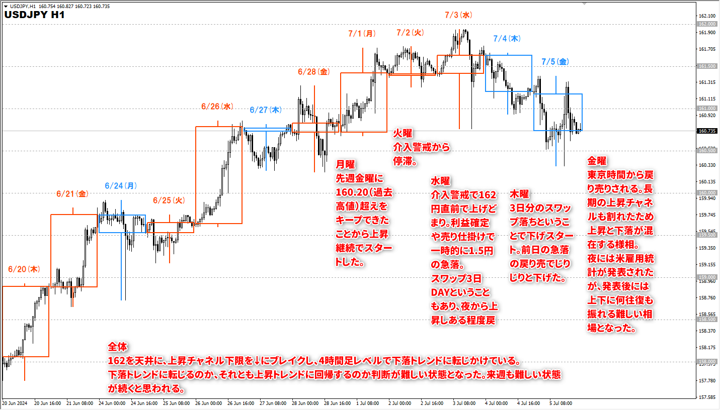 2024年7月1日(月)~7月5日(金)のFXの一週間のトレード結果です。