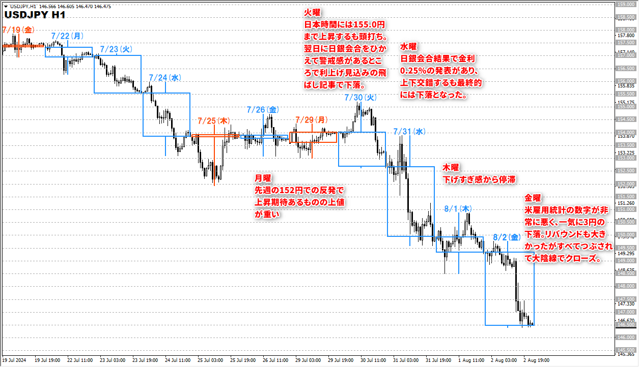 2024年7月29日(月)~8月2日(金)のFXの一週間のトレード結果です。